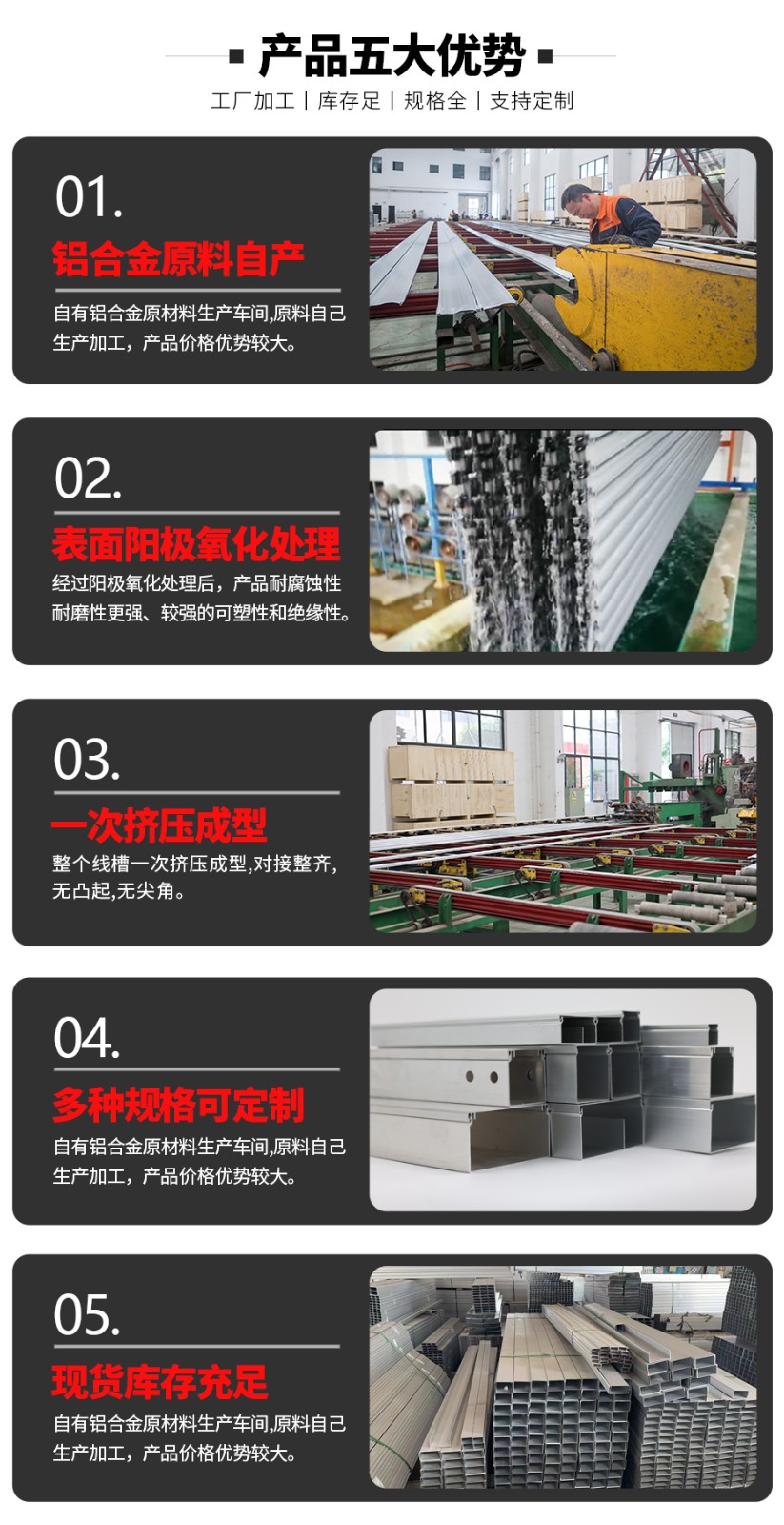 從原材料到成品均自行生產(chǎn),鋁型材的模板可隨之客戶要求訂制,表面噴塑顏色也可隨之客戶要求訂制;